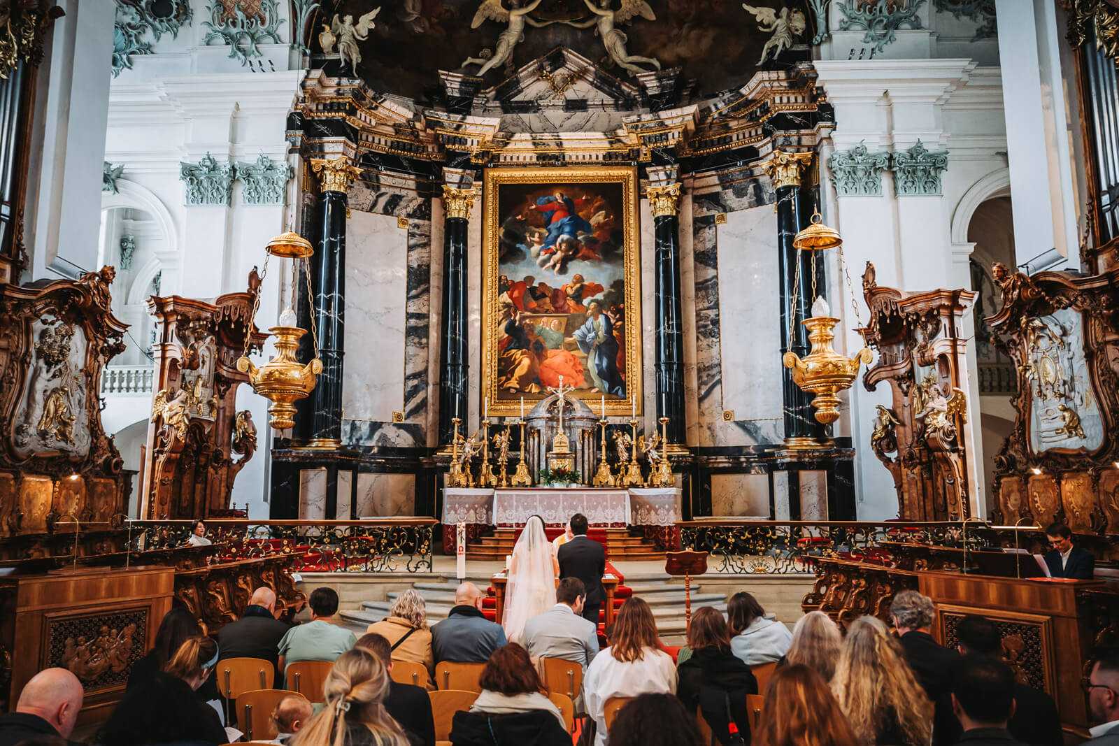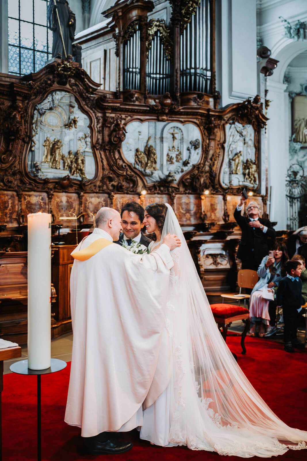 Diese Hochzeit in der Kathedrale St. Gallen war geprägt von tiefer Emotion, kultureller Verbundenheit und einer eindrücklichen kirchlichen Atmosphäre. Die katholische Trauung im Dom St. Gallen vereinte Familie und Freunde aus der Schweiz und aus Kolumbien in einer bewegenden, zweisprachigen Zeremonie, die beide Kulturen harmonisch miteinander verband.